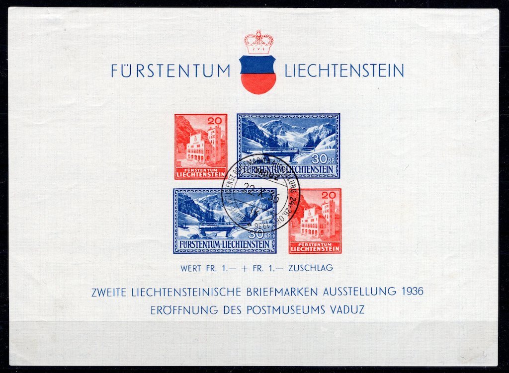 | Liechtenstein: 1936 Used Souvenir Sheet Closed |