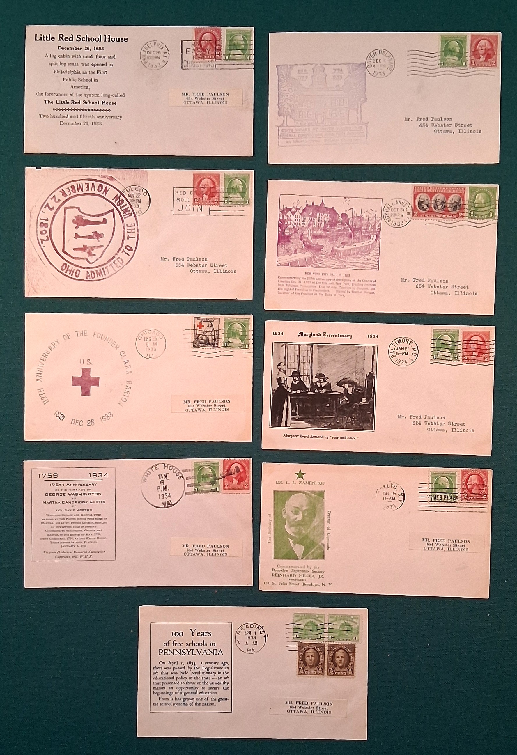 USA, 9 Commemorating covers from 1933 - 1934