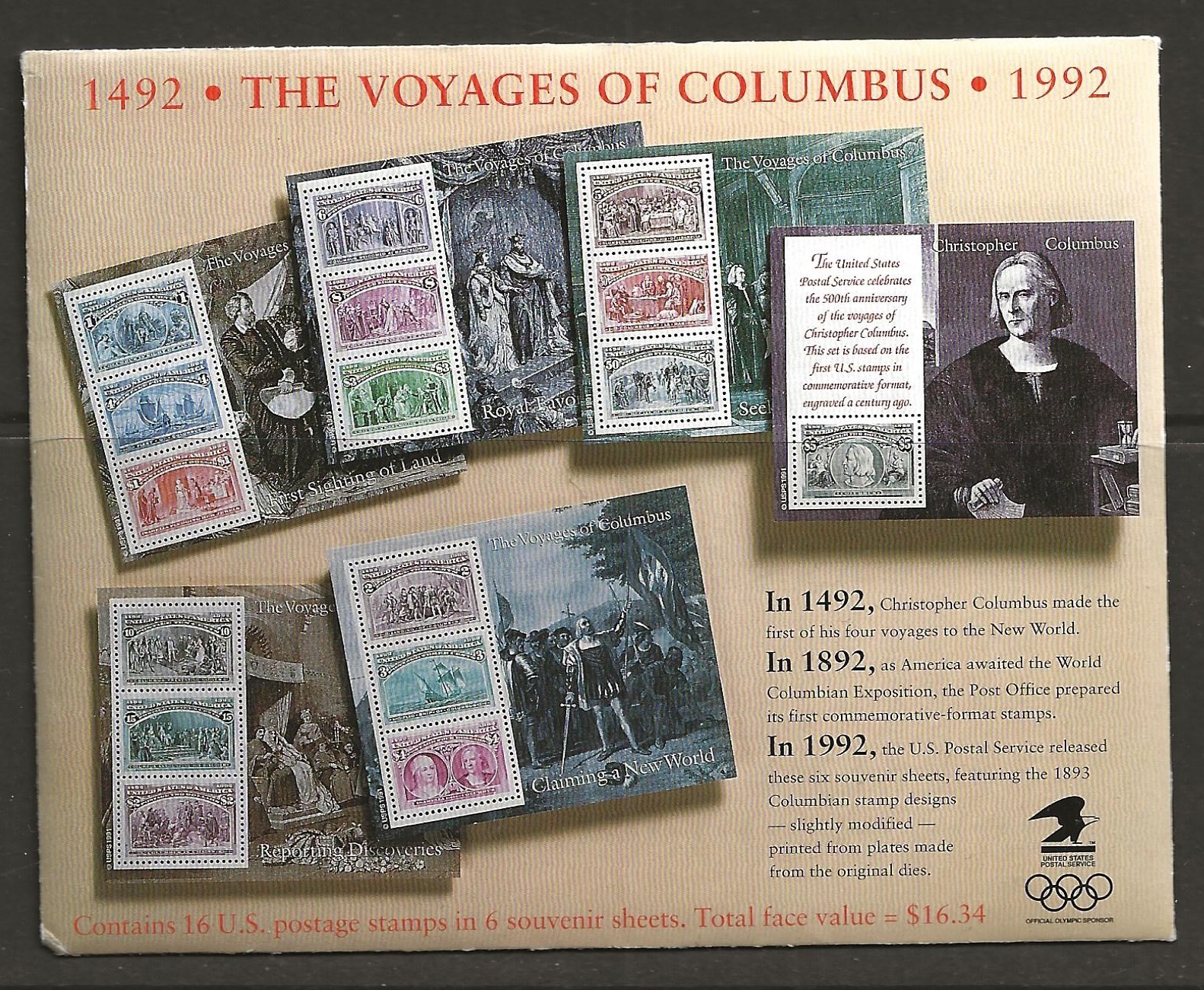 | USA, The voyages of Columbus from 1992, 6 sheets mint |
