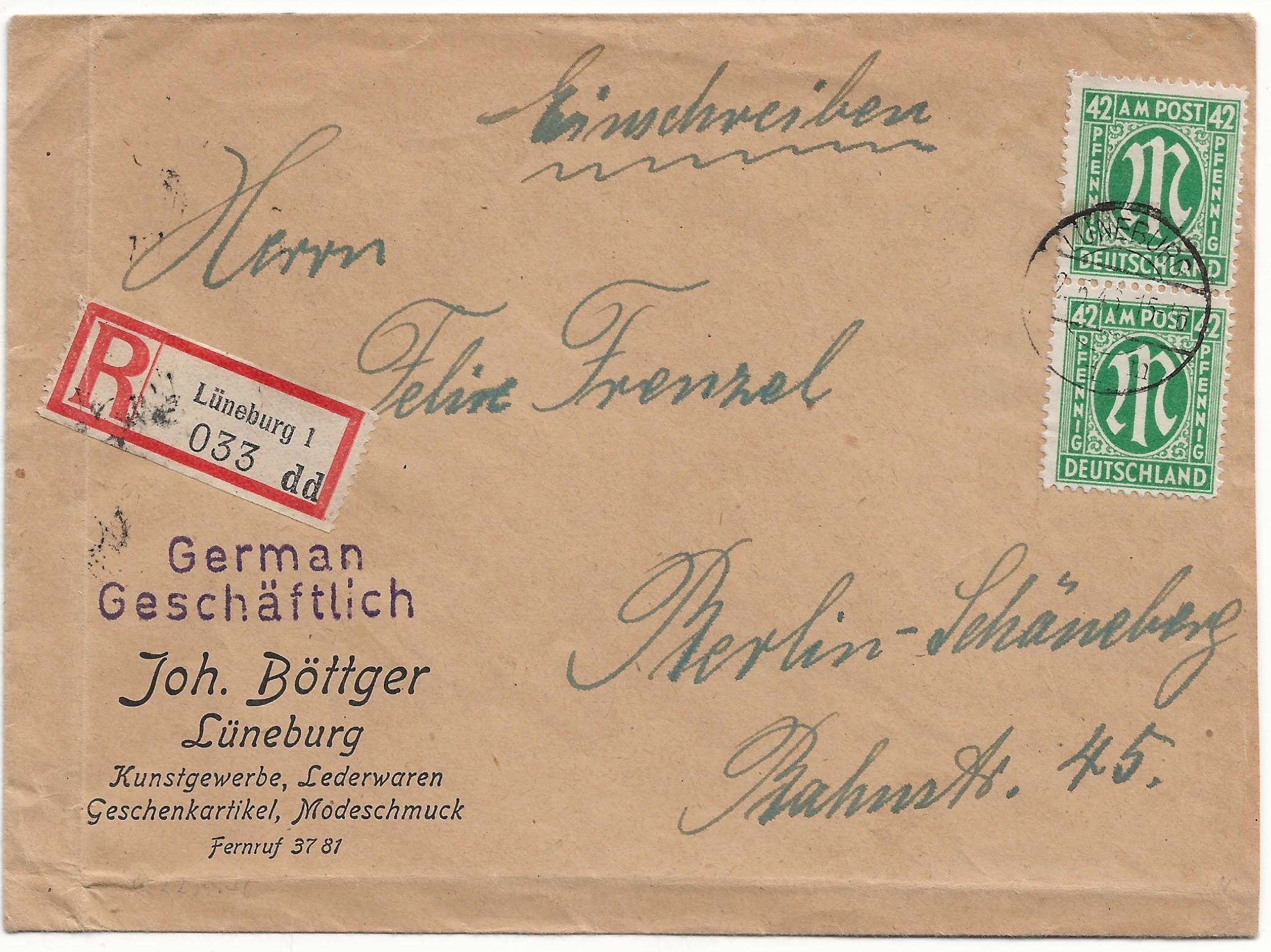 Germany, A M POST, Nr 31 A in Pair on a letter, 1946. PF 14 Closed* ->
