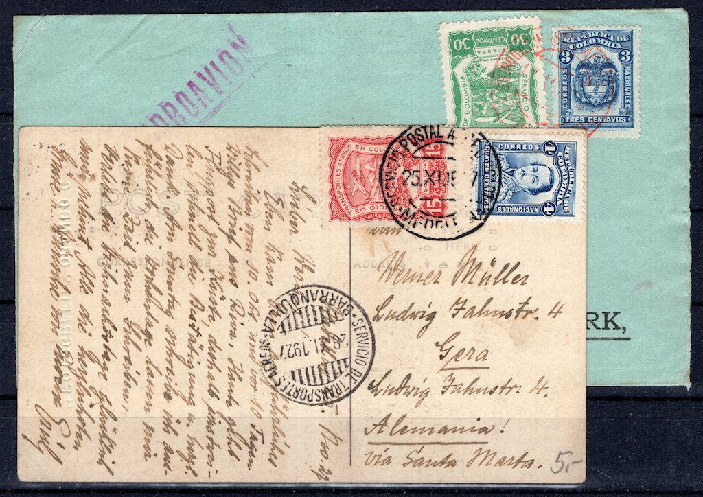 | Columbia: Two Old Items with SCADTA Stamps Closed |