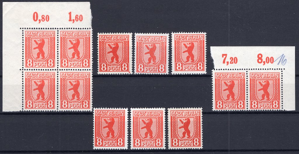 | Soviet Zone: Lot Plate Errors Berlin Bear 8 Pfennig |
