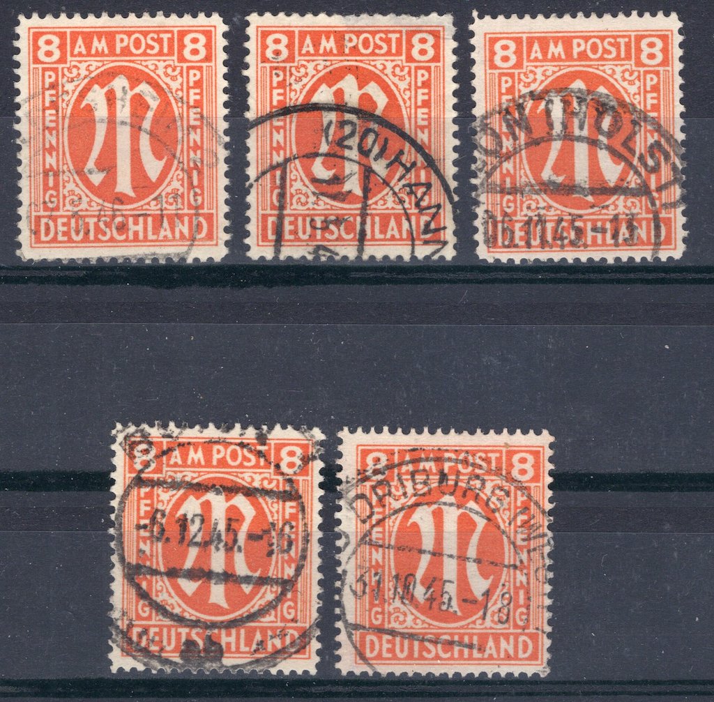 | Bizone: AM Post 8 Pf. English Print All Types Signed |
