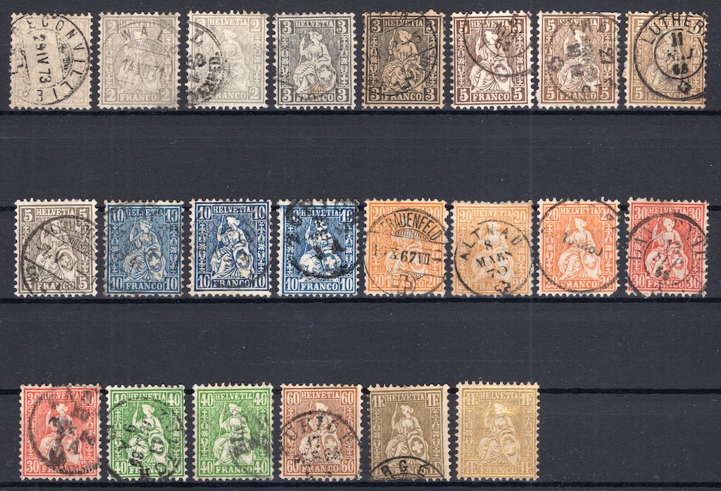 Zumstein 28/36 white paper. Last mint hinged, rest used in still quite decent condition, cancellations not verified.