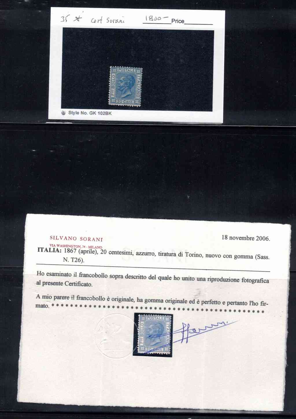 Italy Sc 35 VF H OG CERT CV 1800$