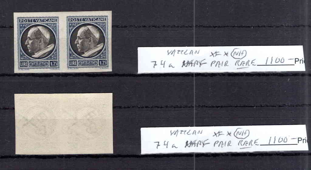 Vatican Sc 74var VFNH Pair IMPERF CV 1100$ RARE!