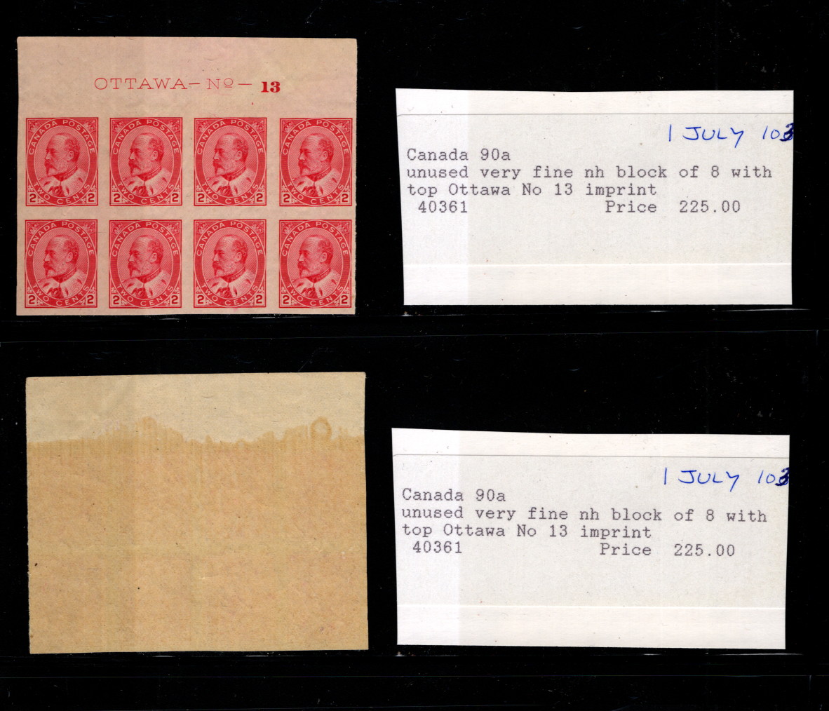 9902972 Canada Sc 90a RRR BK8 VFNH TAB Ottawa CV 1000$ * -> (Item #: 9902972)