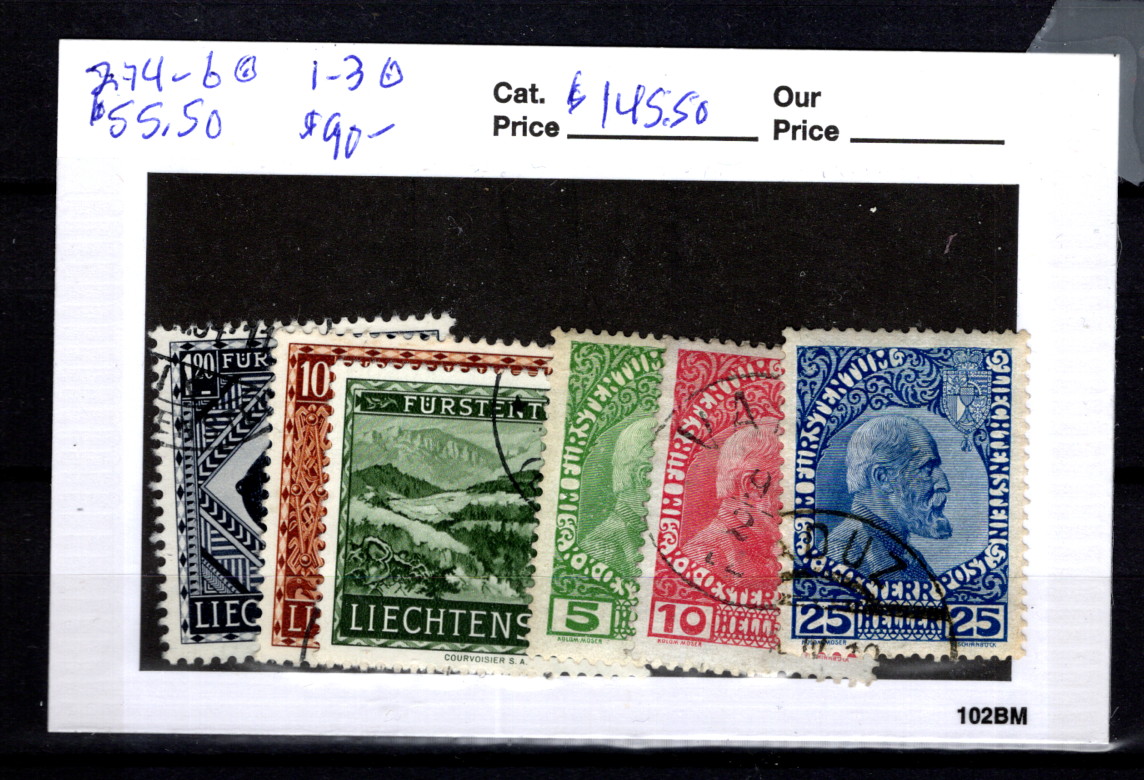 Liechtenstein Sc 274-6,1-3 VF Used CDS CV 145.50$