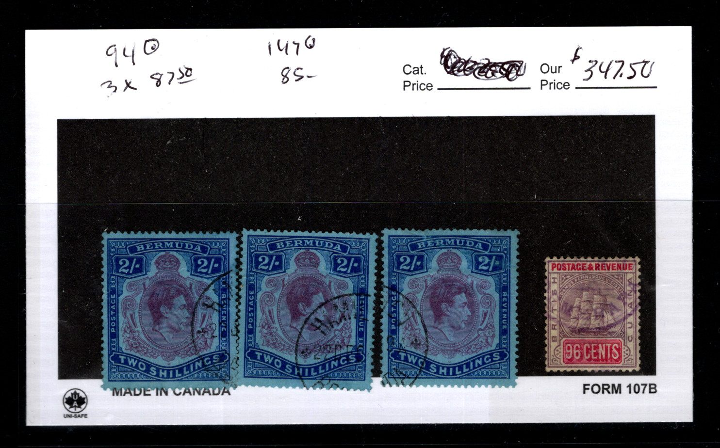 GB Colonies Bermuda Sc 94(3)mBr Guiana Sc 147 CV 347.50$