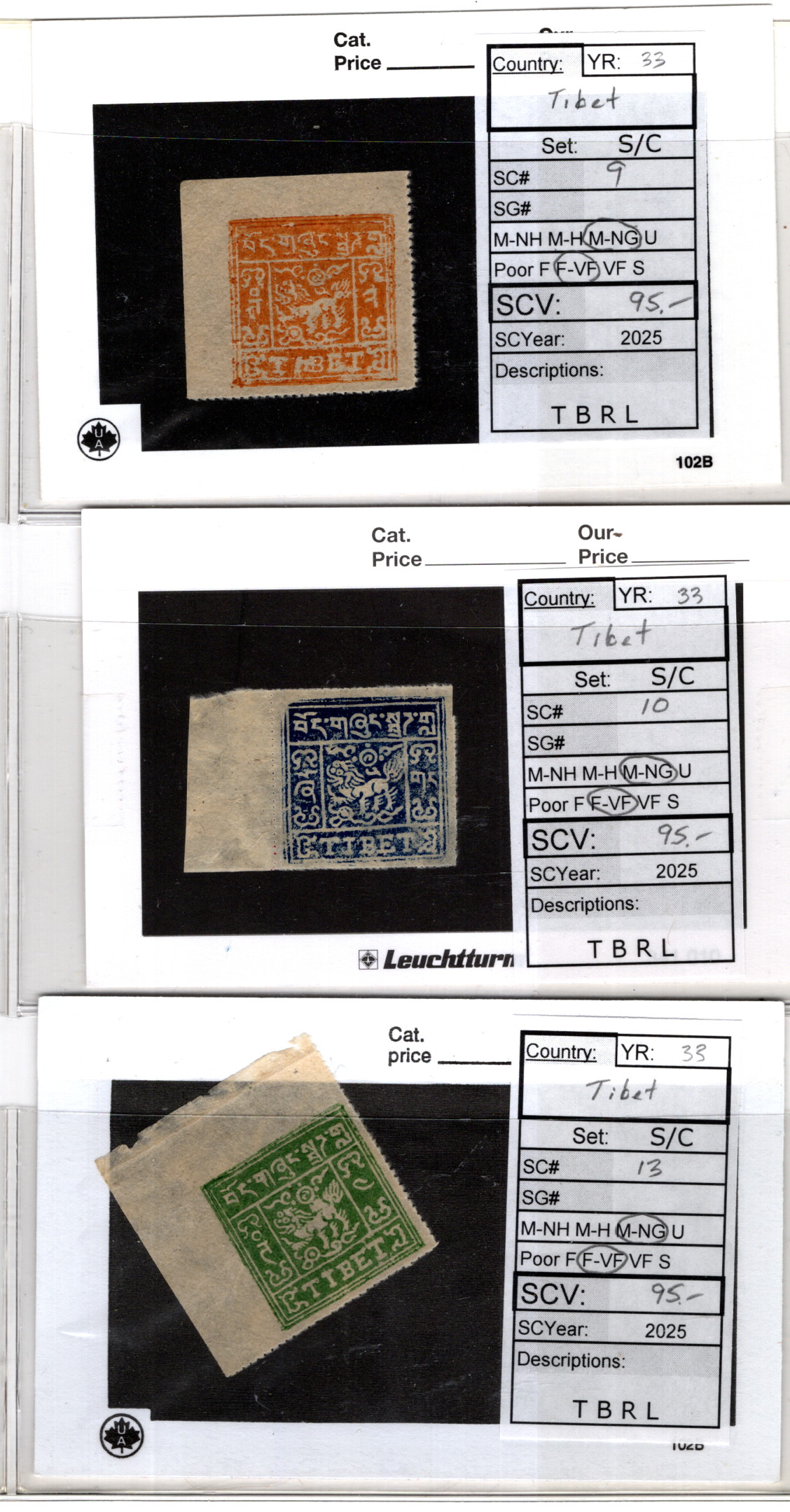 9906957 Tibet Sc 9,10,13 VF Mint CV 285$ * -> (Item #: 9906957)