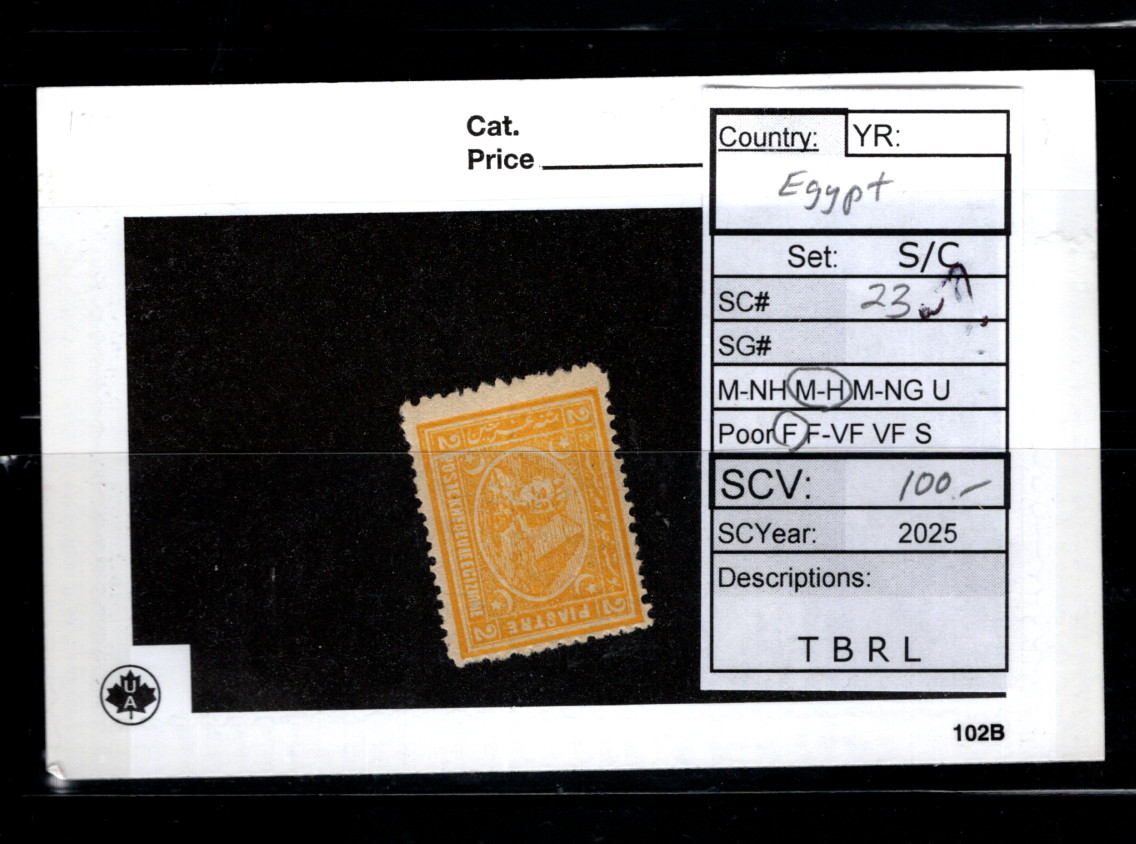 Egypte Sc 23 VF H OG CV 100$