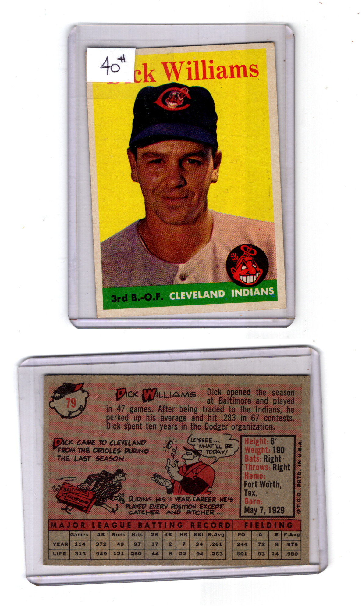 Baseball Dick Williams Topps 1958 #79 Nice Quality!