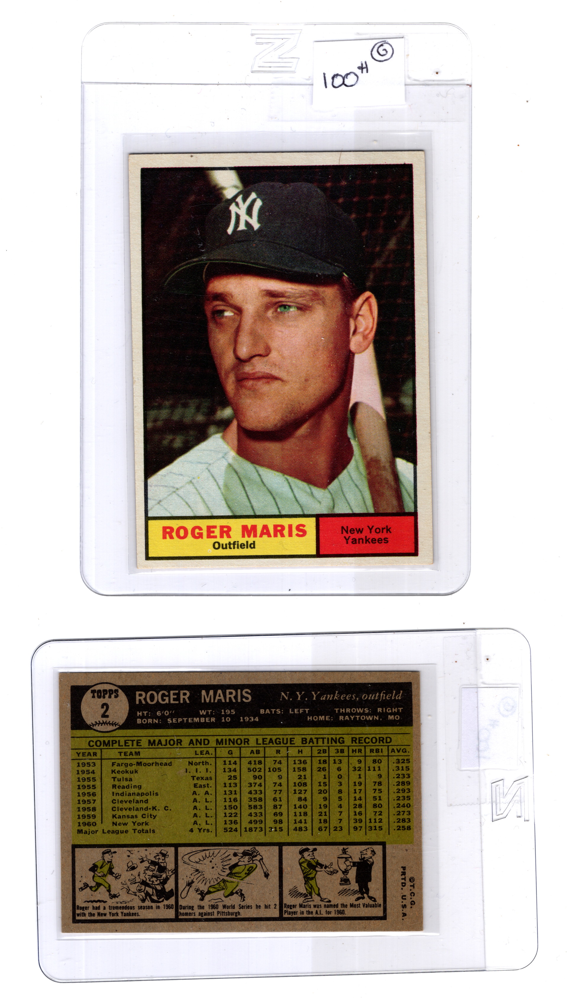 9907142 Baseball Roger Maris Topps 1961 #2 Rare! Quality!