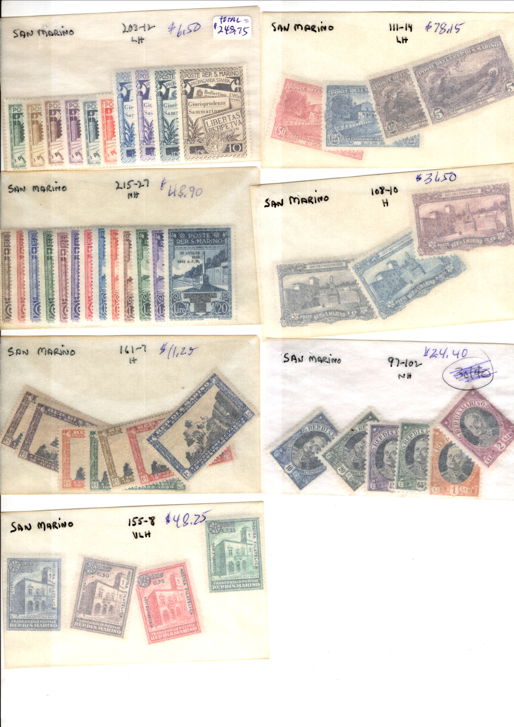 9907214 San Marino Scarce NH/LH Sets CV 248.75$ LOOK* -> (Item #: 9907214)