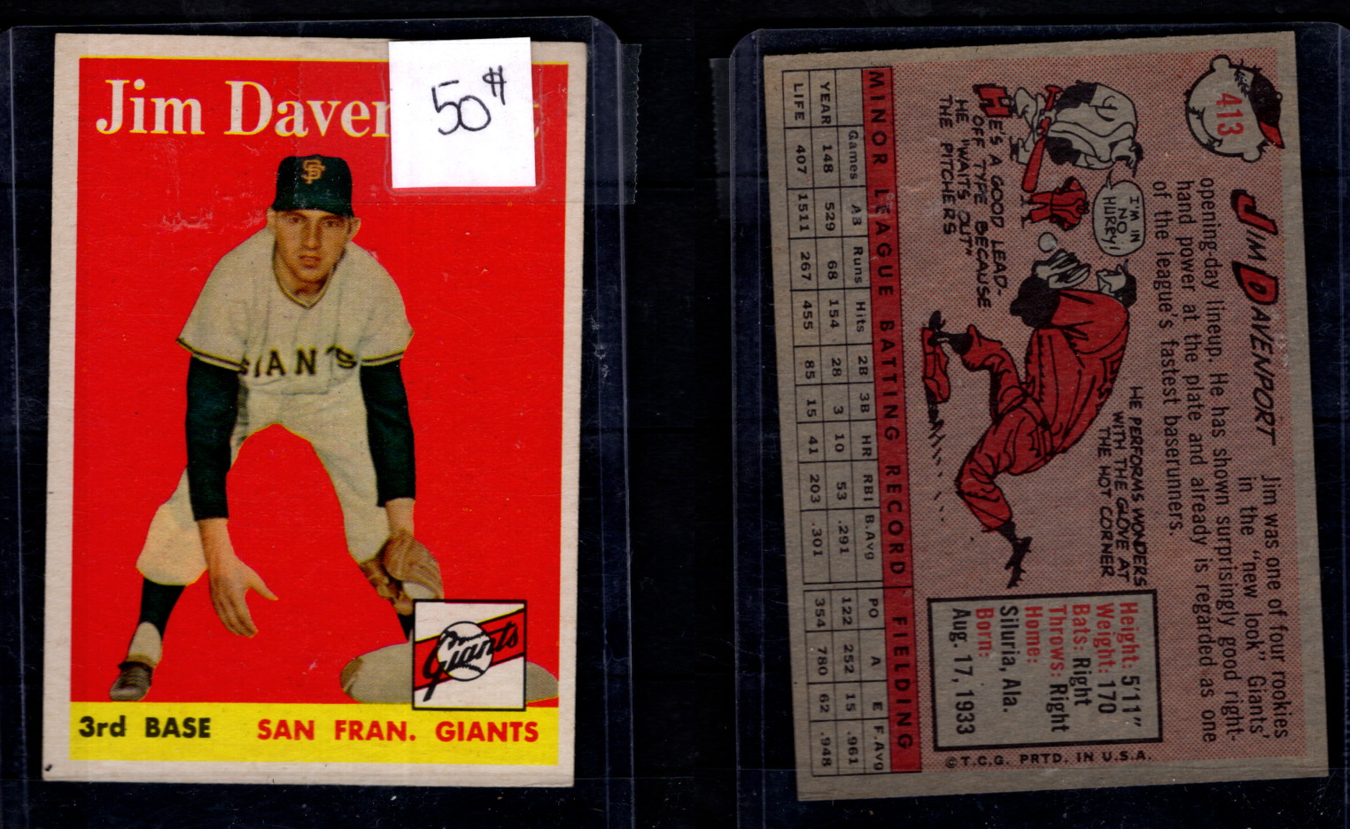 Baseball Topps 1958 #413 Jim Davenport Hi Grade