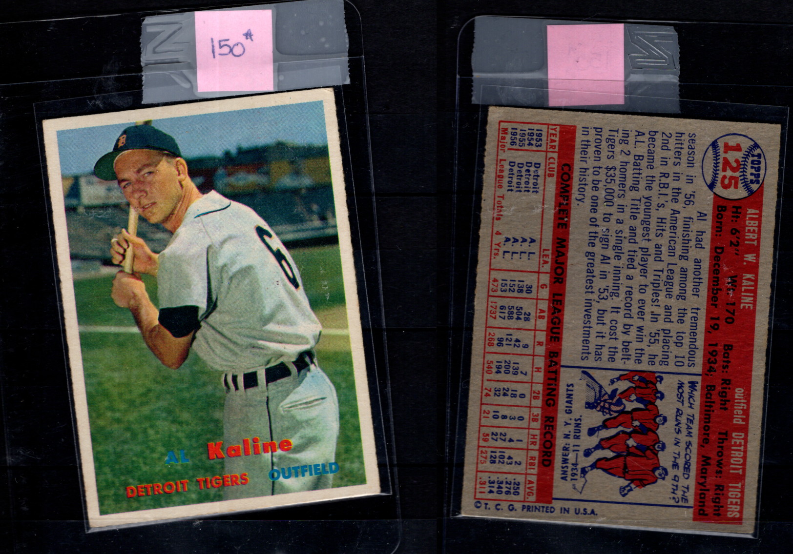 Baseball Topps 1957 #125 Al Kaline Hi Grade HiCV