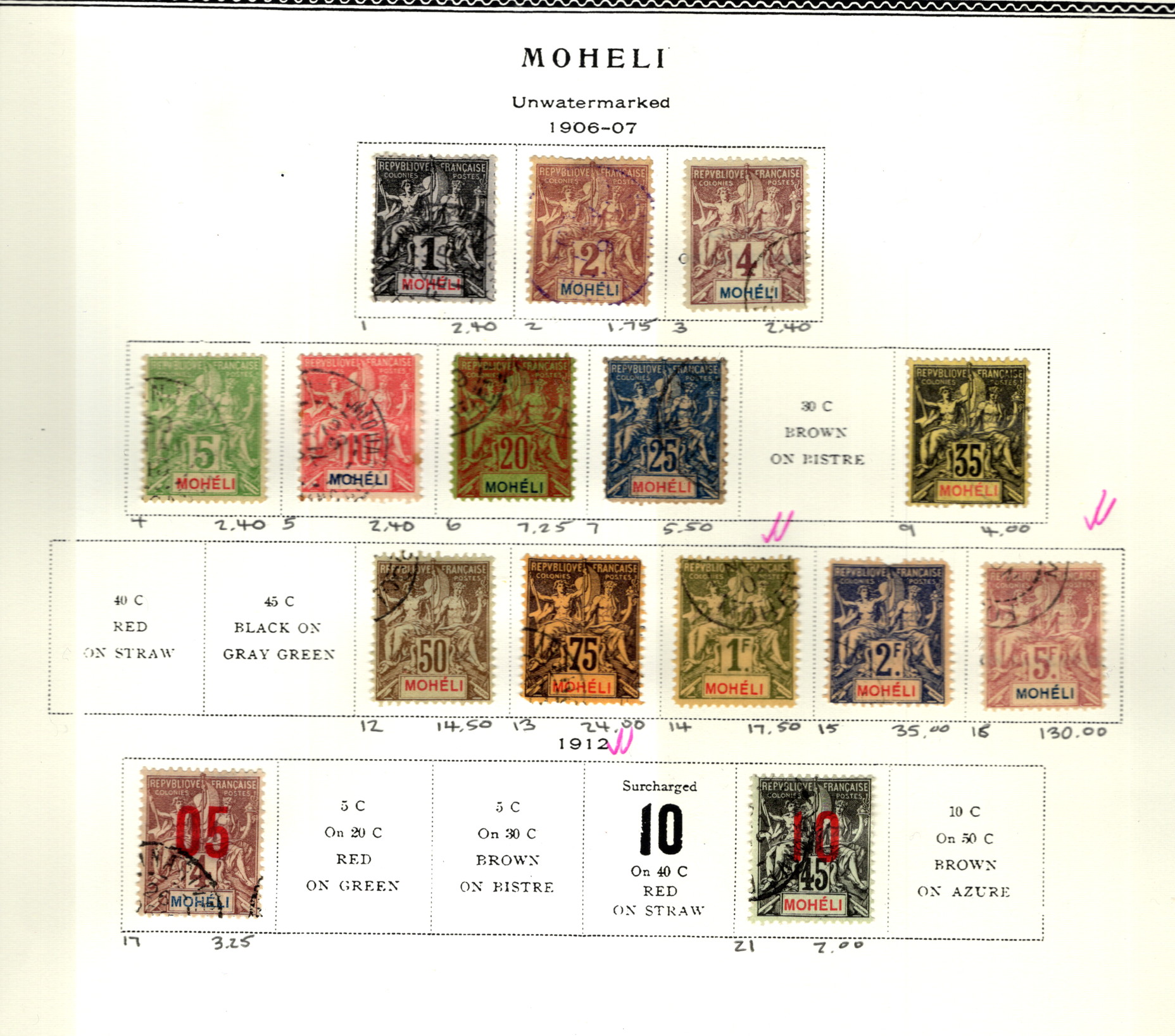 9908212 Moheli Mint/Used 1906/...* -> (Item #: 9908212)