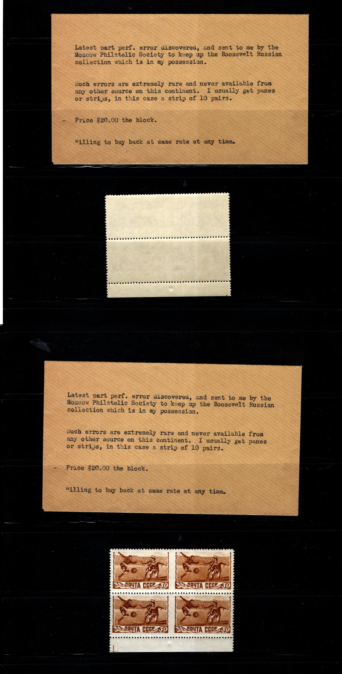 Russia RRR Amazing IMPERF Between NH BK4