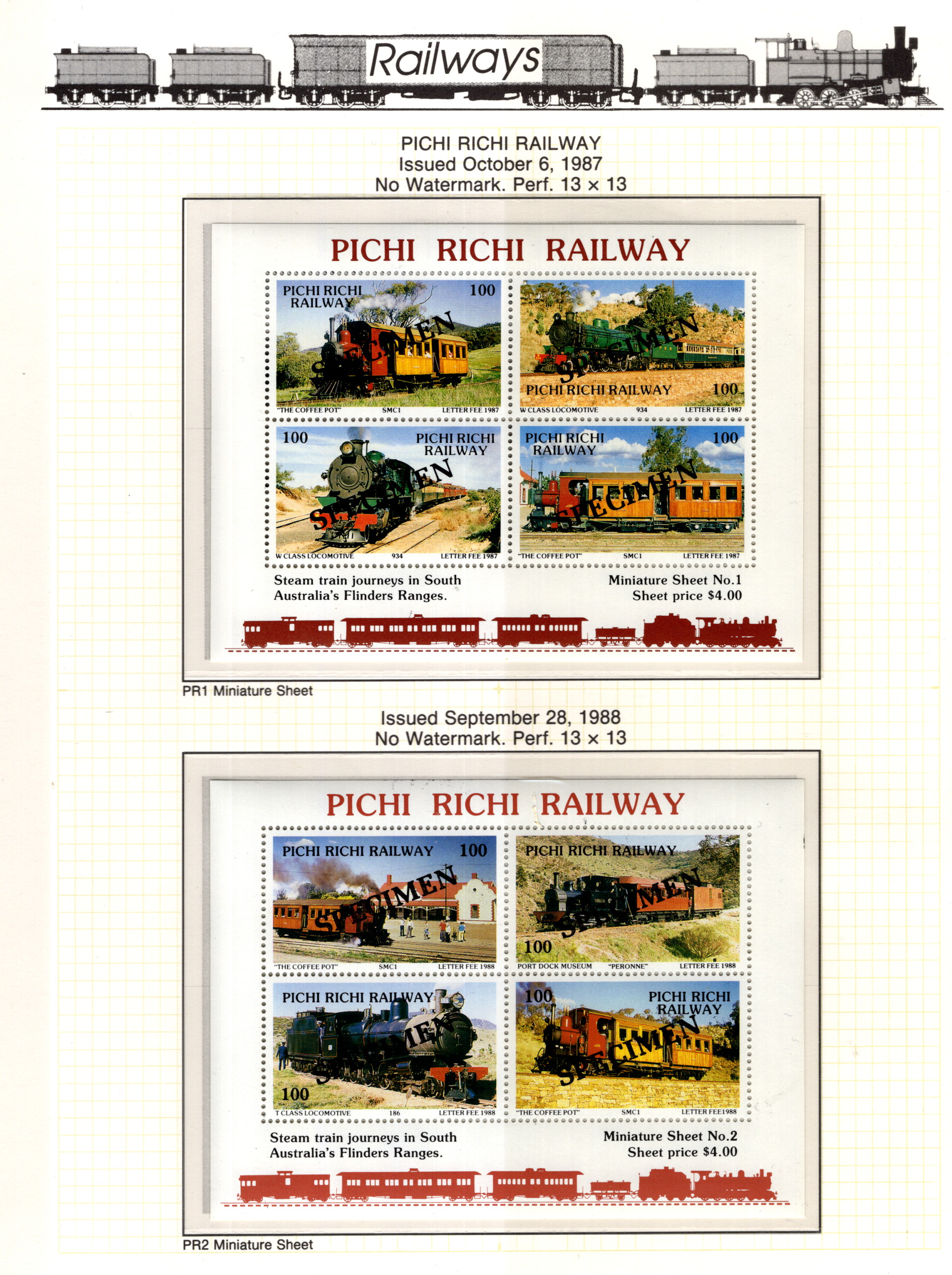 Australia Trains 1987 VFNH PERF/Specimen 2x
