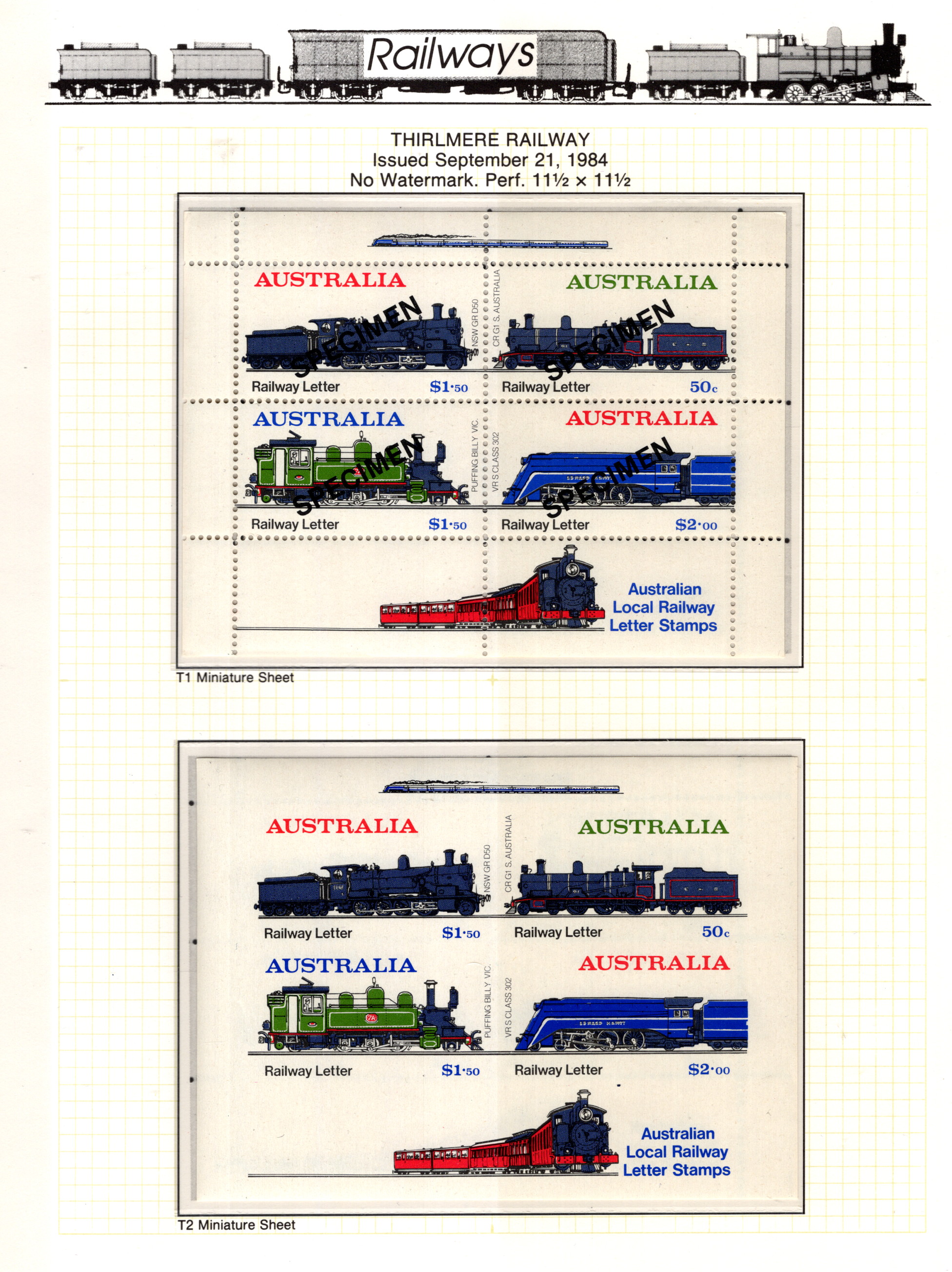 Australia Trains 1984 VFNH IMPERF/OVPT SP
