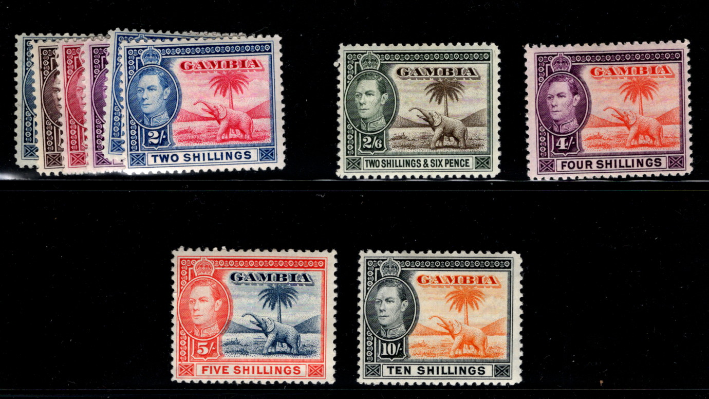 9909407 Gambia Sc 136-43 VFNH CV 110$ KGVI to 10/-* -> (Item #: 9909407)