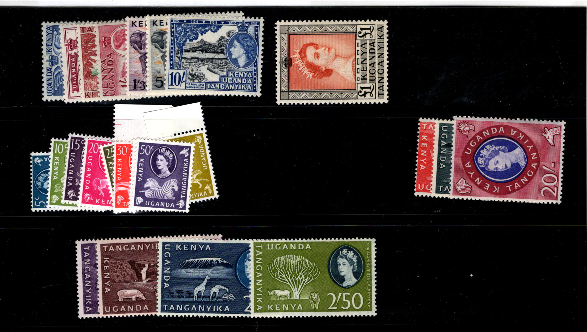 Kenya U-T VF NH OG QEII 1£ PAIR Fresh! LOOK