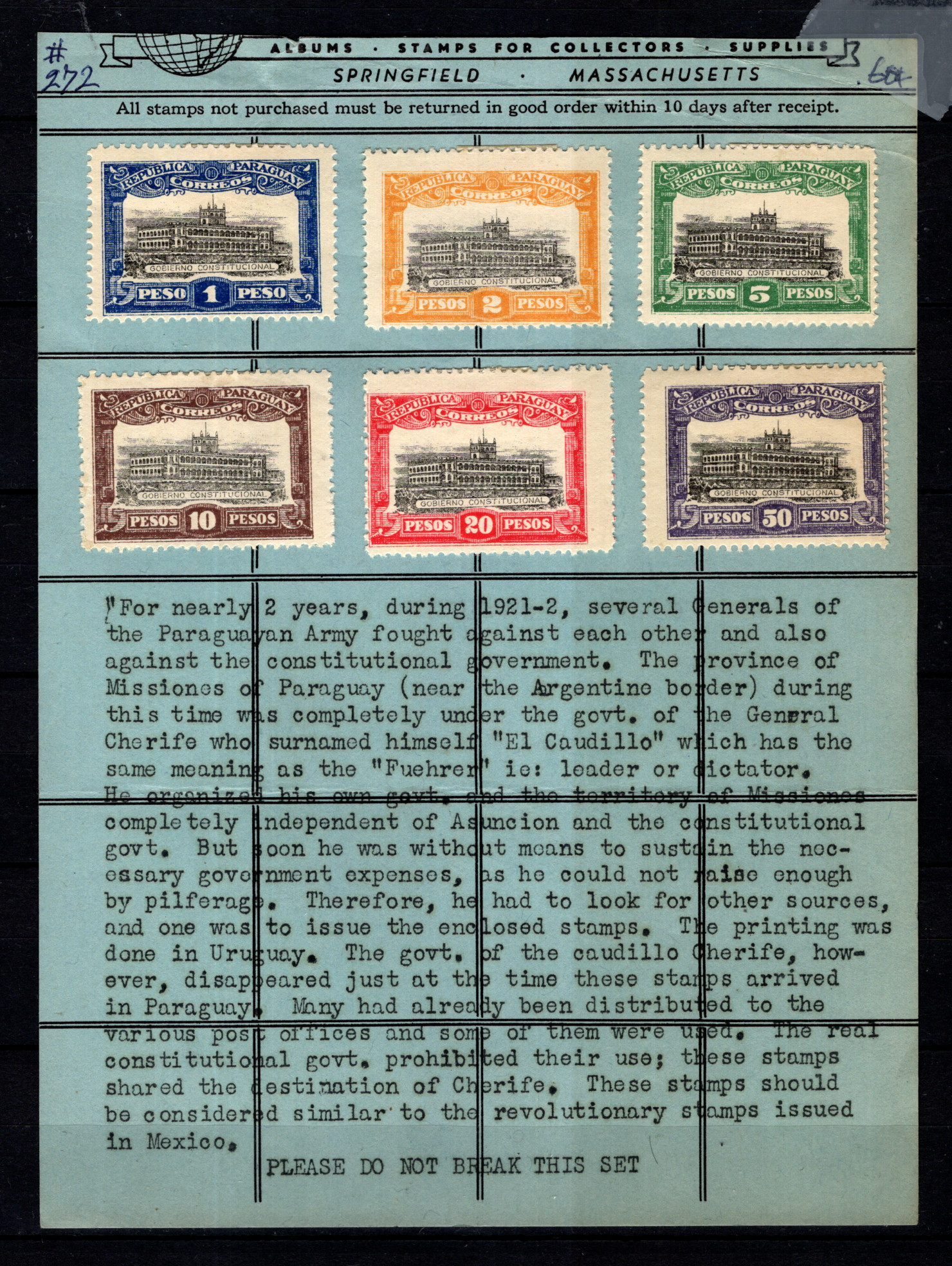 9911301 Paraguay Scarce SET 1908 * -> (Item #: 9911301)