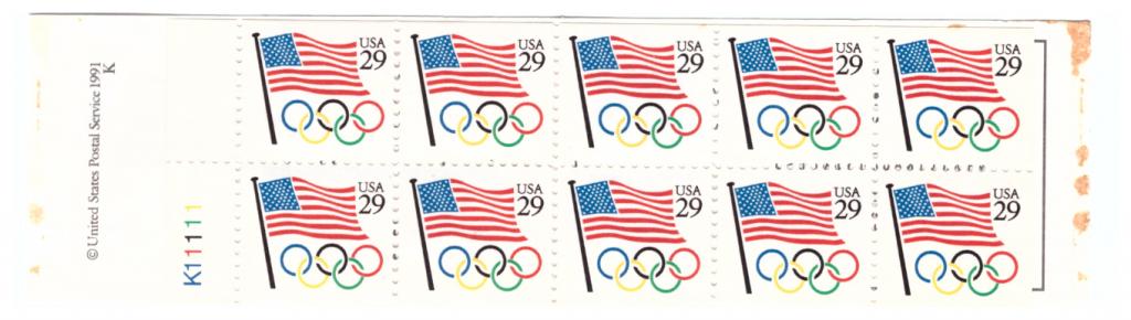 | US Sc.BK186a FLAG AND OLYMPIC RINGS BOOKLET COMP. MNH 1991 |