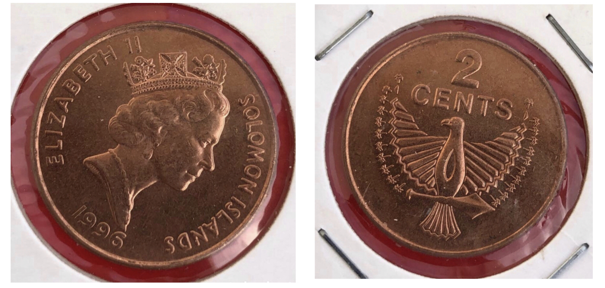 Solomon Islands coin. Value: 2 cents. Year: 1996. Condition: new. # 1673. Take advantage of this opportunity. ~You can take a look at my other items for sale, maybe you'll find what you need~