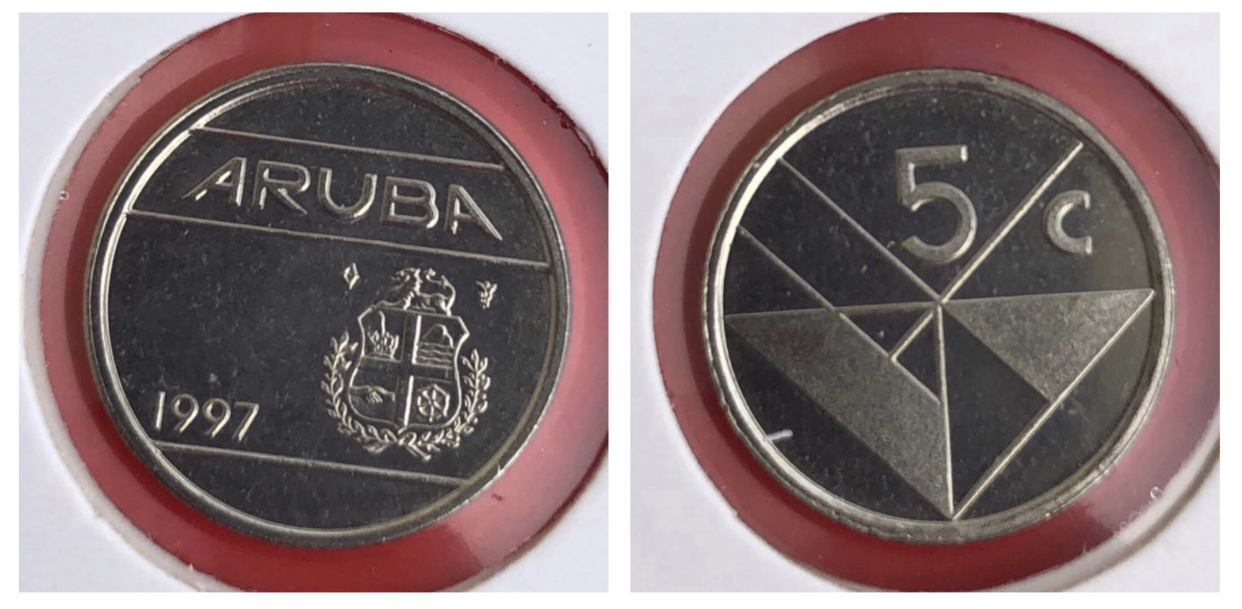 Aruban currency. Value: 5 cents. Year: 1997. Condition: new. # 1681. Take advantage of this opportunity. ~You can take a look at my other items for sale, maybe you'll find what you need~