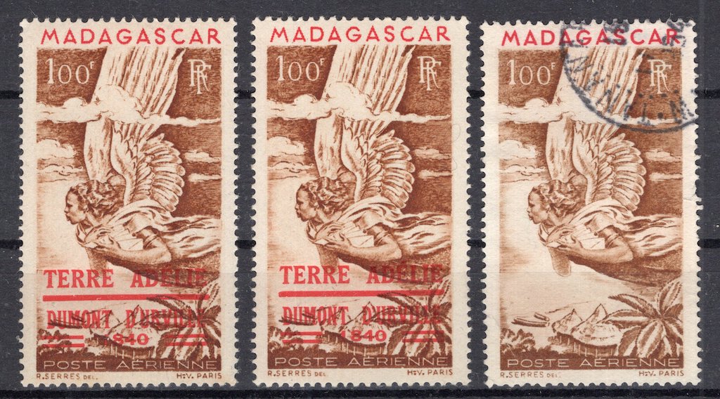 MNH (x2) and one Madagascar stamp without overprint used.