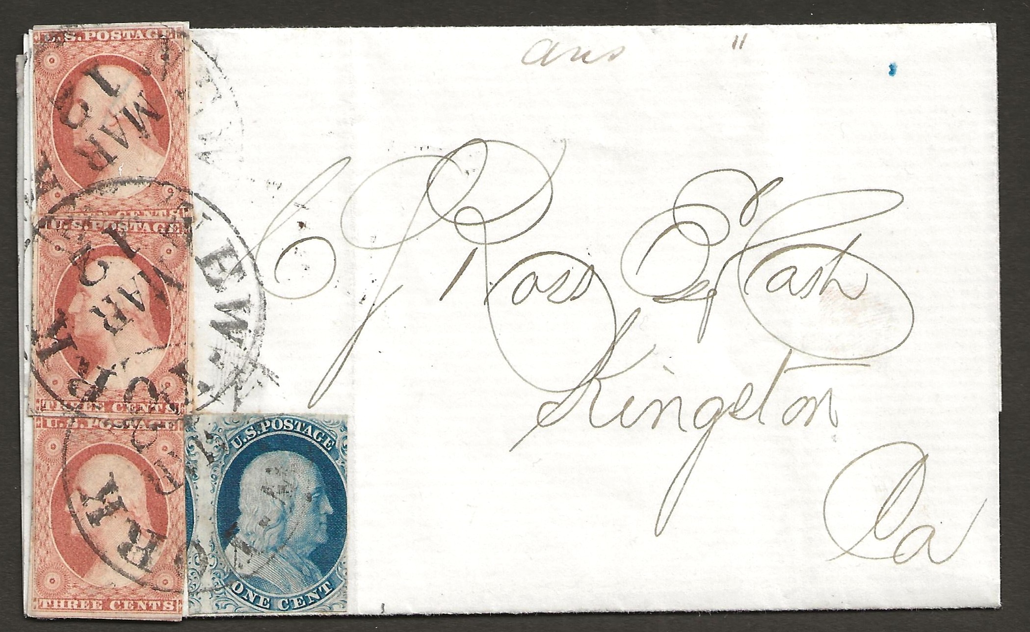 USA letter with nr 9 nr 11 (3), 12,5 x 7,5 cm. canc 1853