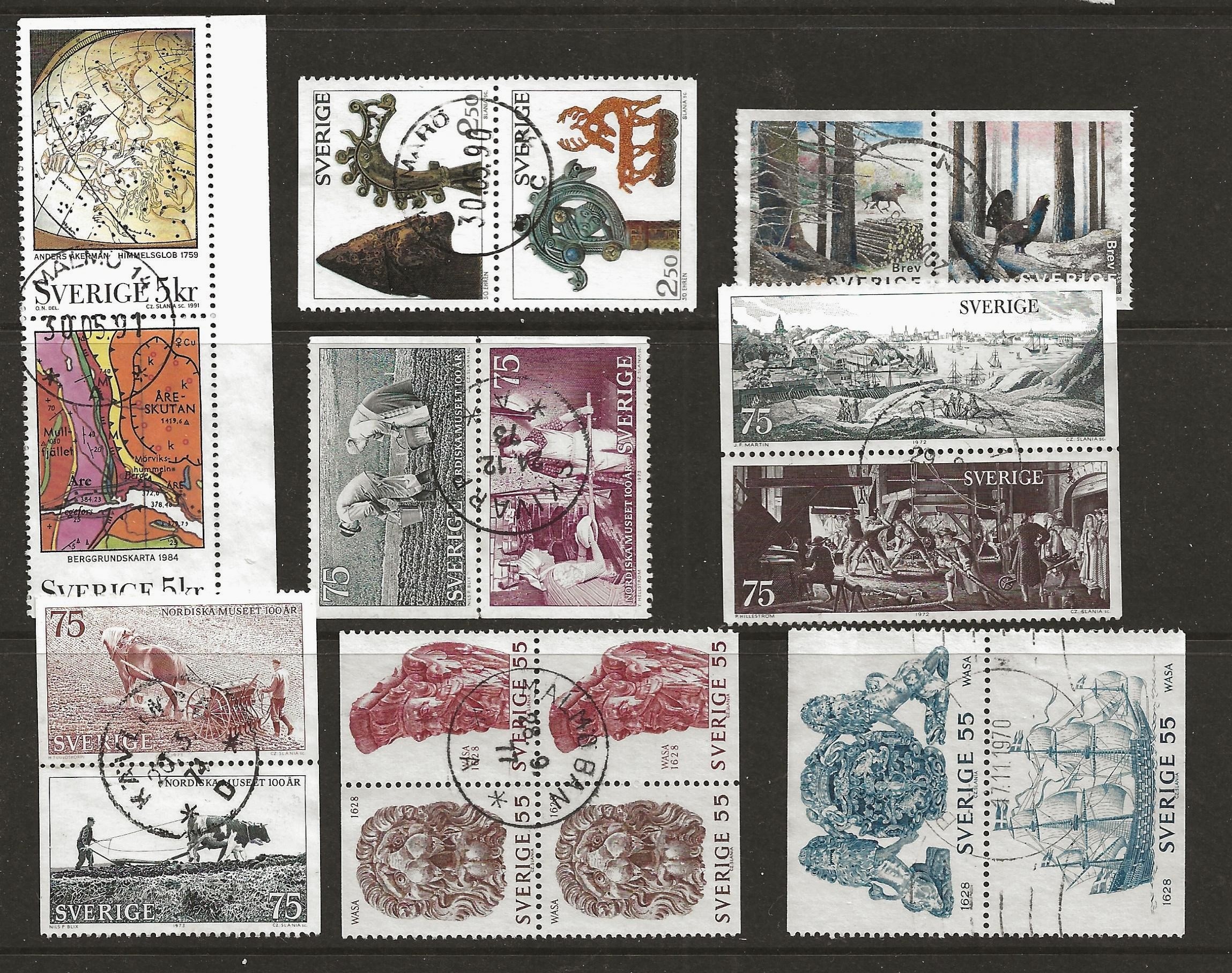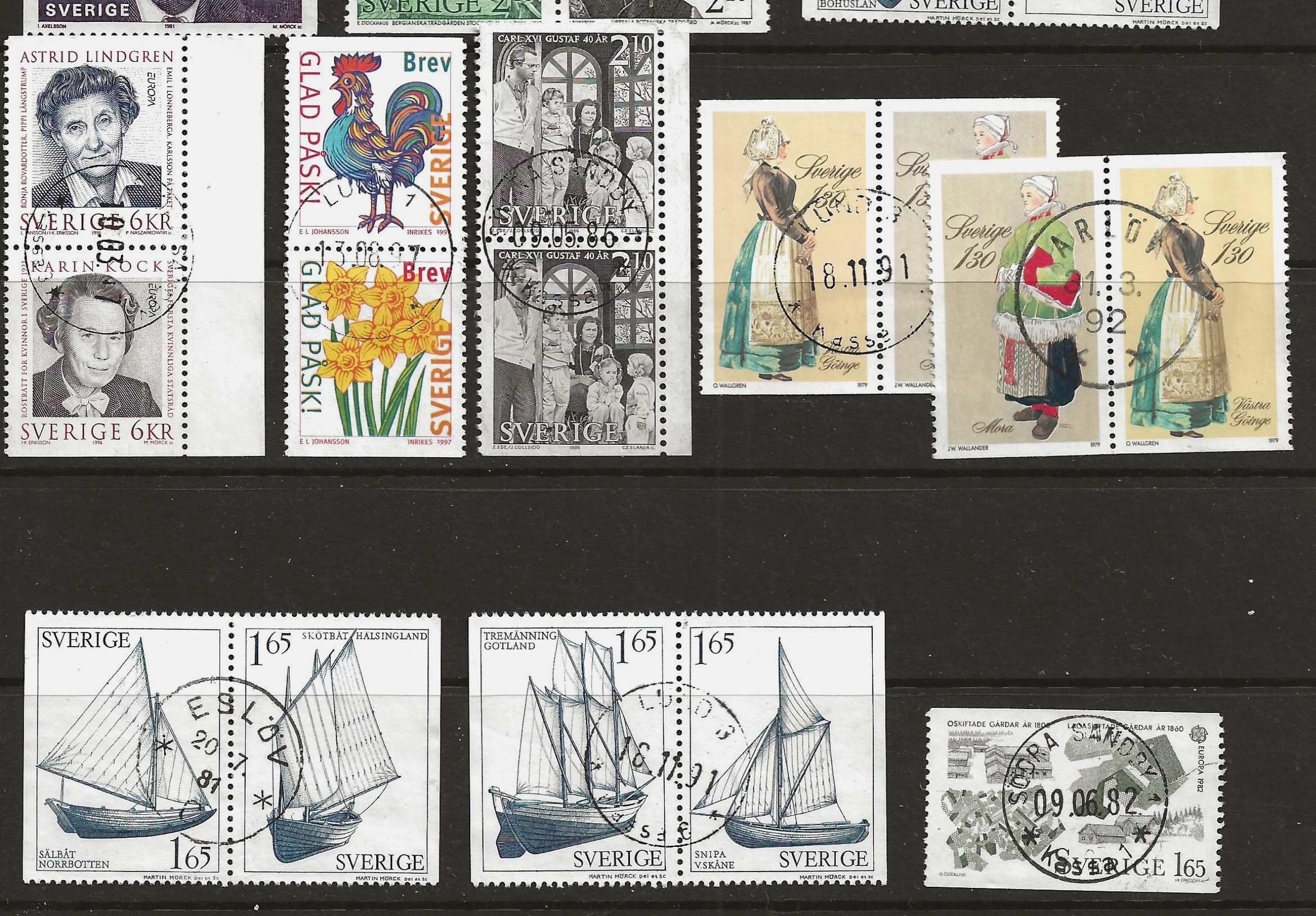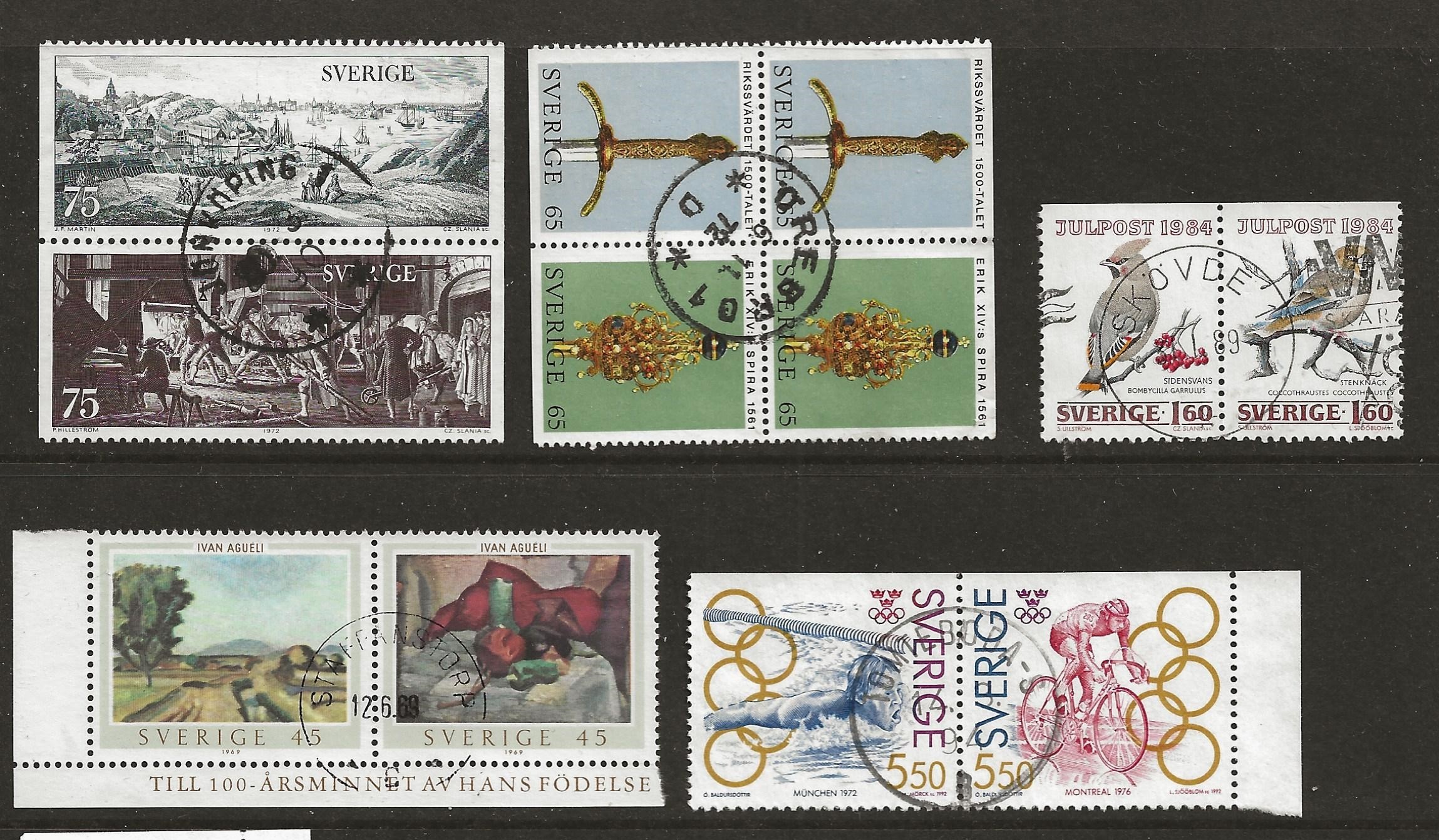 | Sweden, used stamp from booklets on 6 pages |