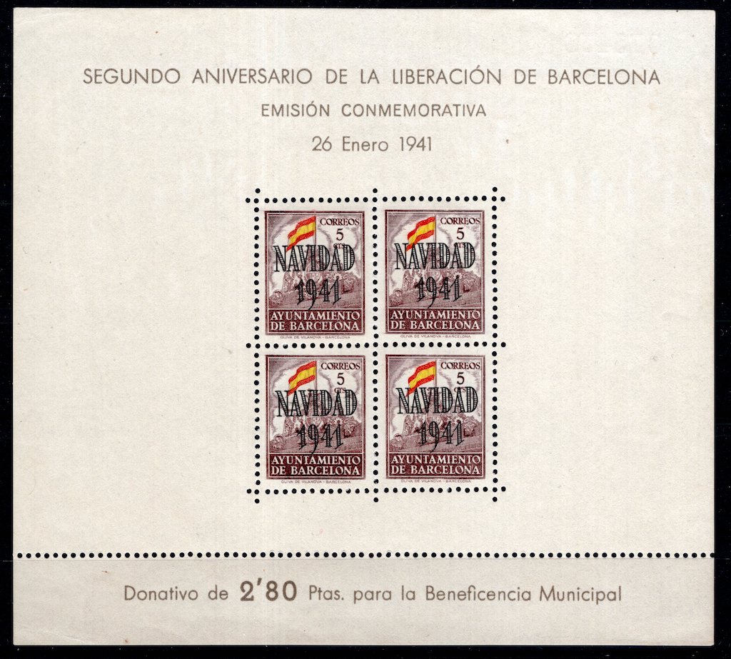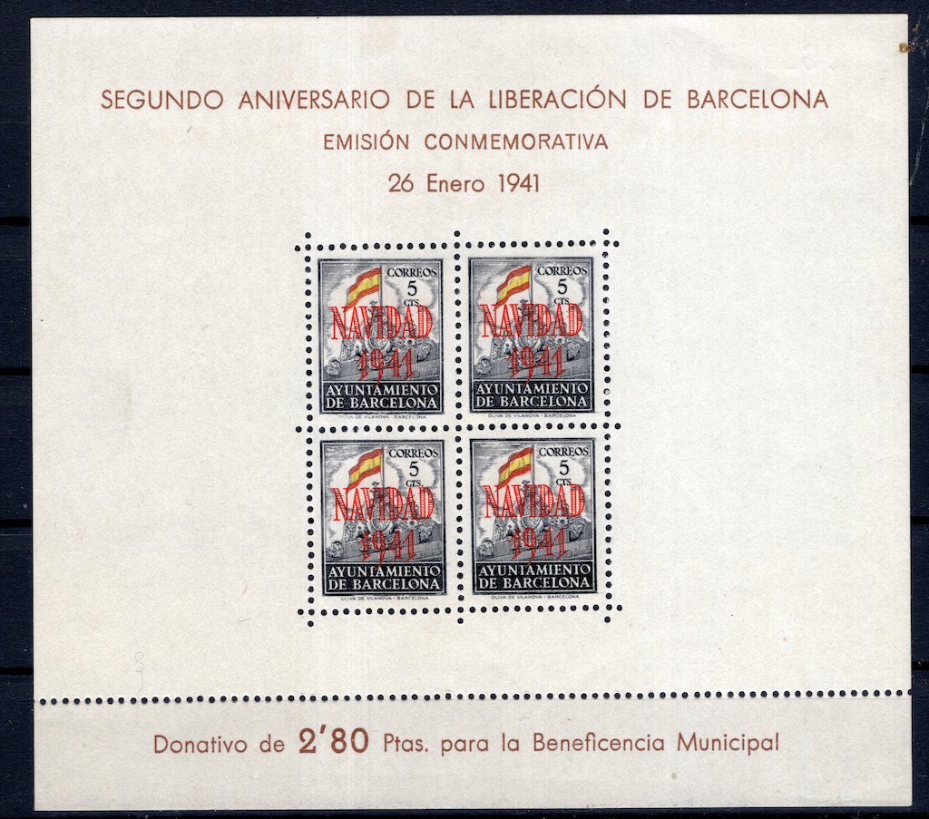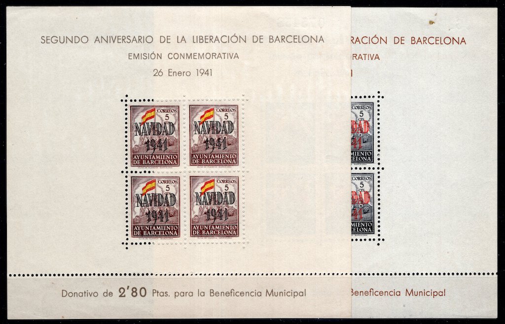 | Spain: 1941 Mint Set Souvenir Sheets Barcelona Navidad |