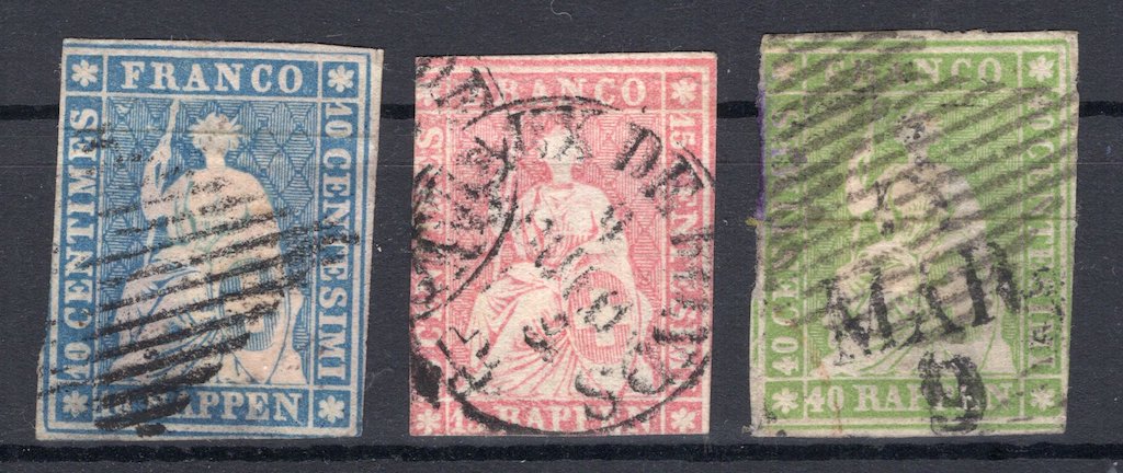 | Dwitzerland: Three Classic Stamps Sitting Helvetia Closed |