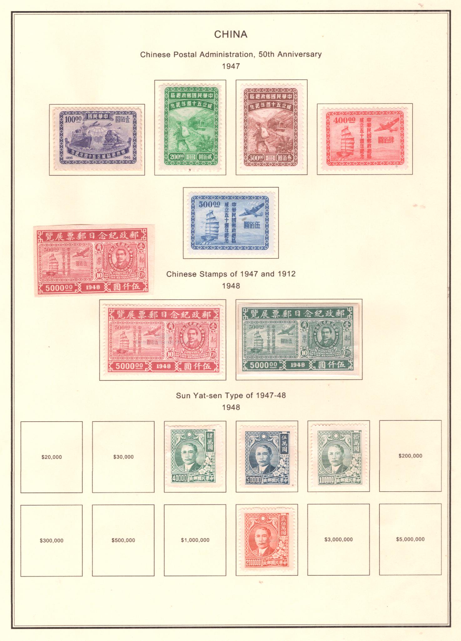 CHINA 1947 please do not pay until you receive my invoice postage CAN 2.00 USA 2.00 INT 3.50 will combine postage on winning lots |