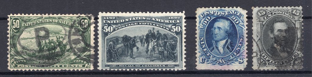 Mostly quite decent, the Columbus 50 cents without gum, the stamp after that one with a fault.
