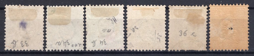 Zumstein 28/36 white paper. Last mint hinged, rest used in still quite decent condition, cancellations not verified.