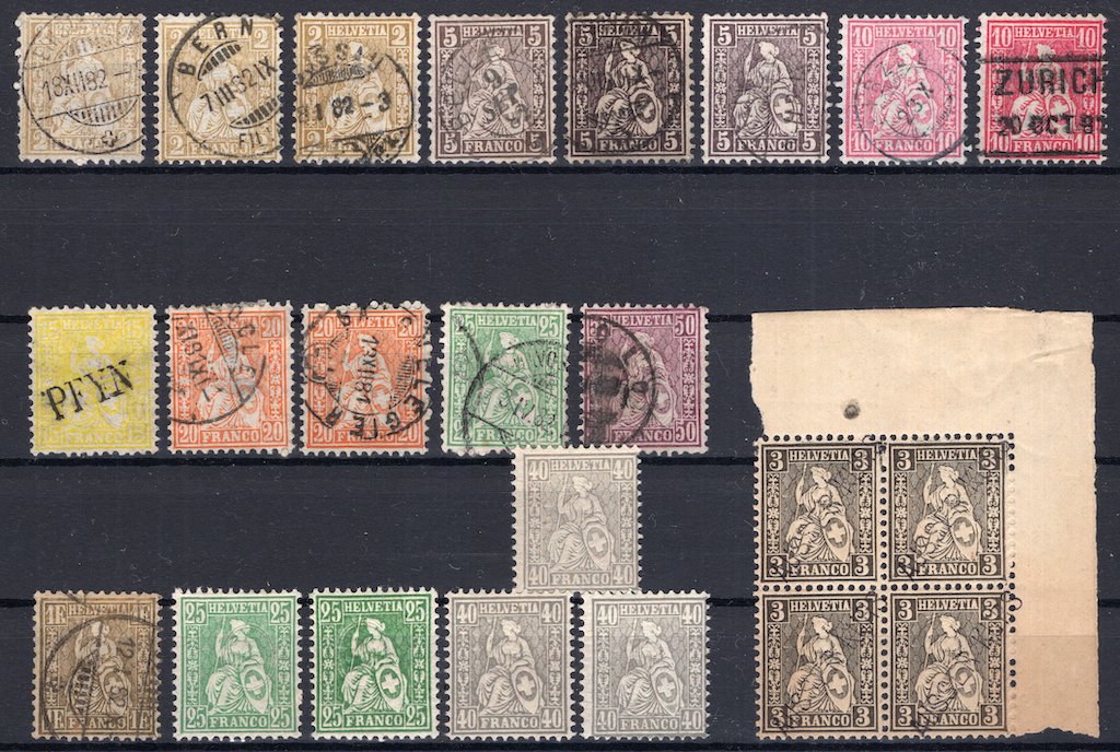 Zumstein 44/52 fiber paper. Mostly used in still quite decent condition, cancellations not verified.