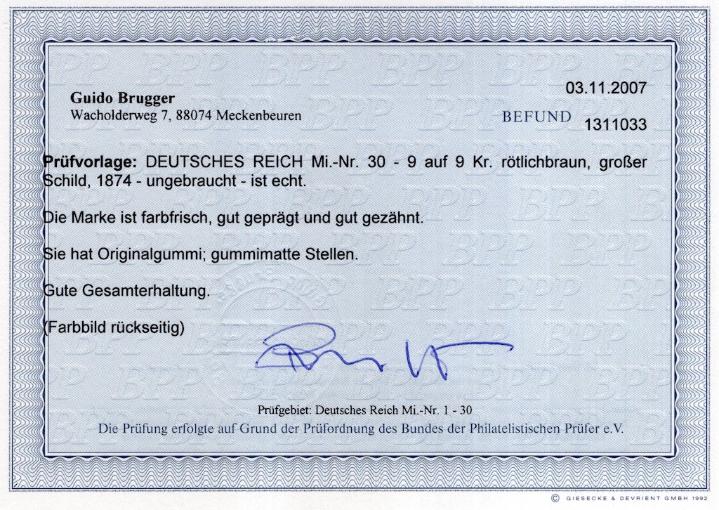 | German Empire: 1874 Mint Shield with Certificate |