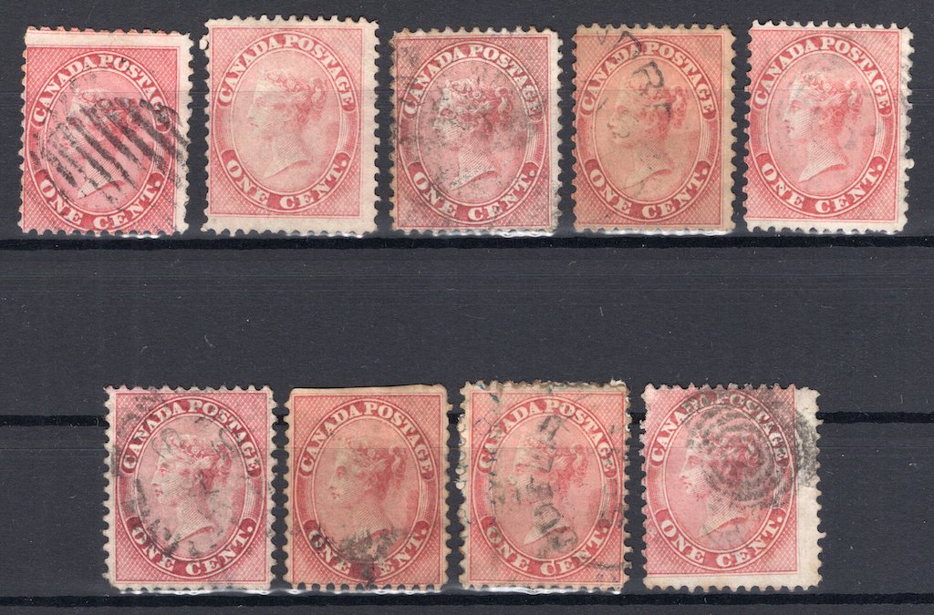 Canada: 1859 1 cent x 9 Used