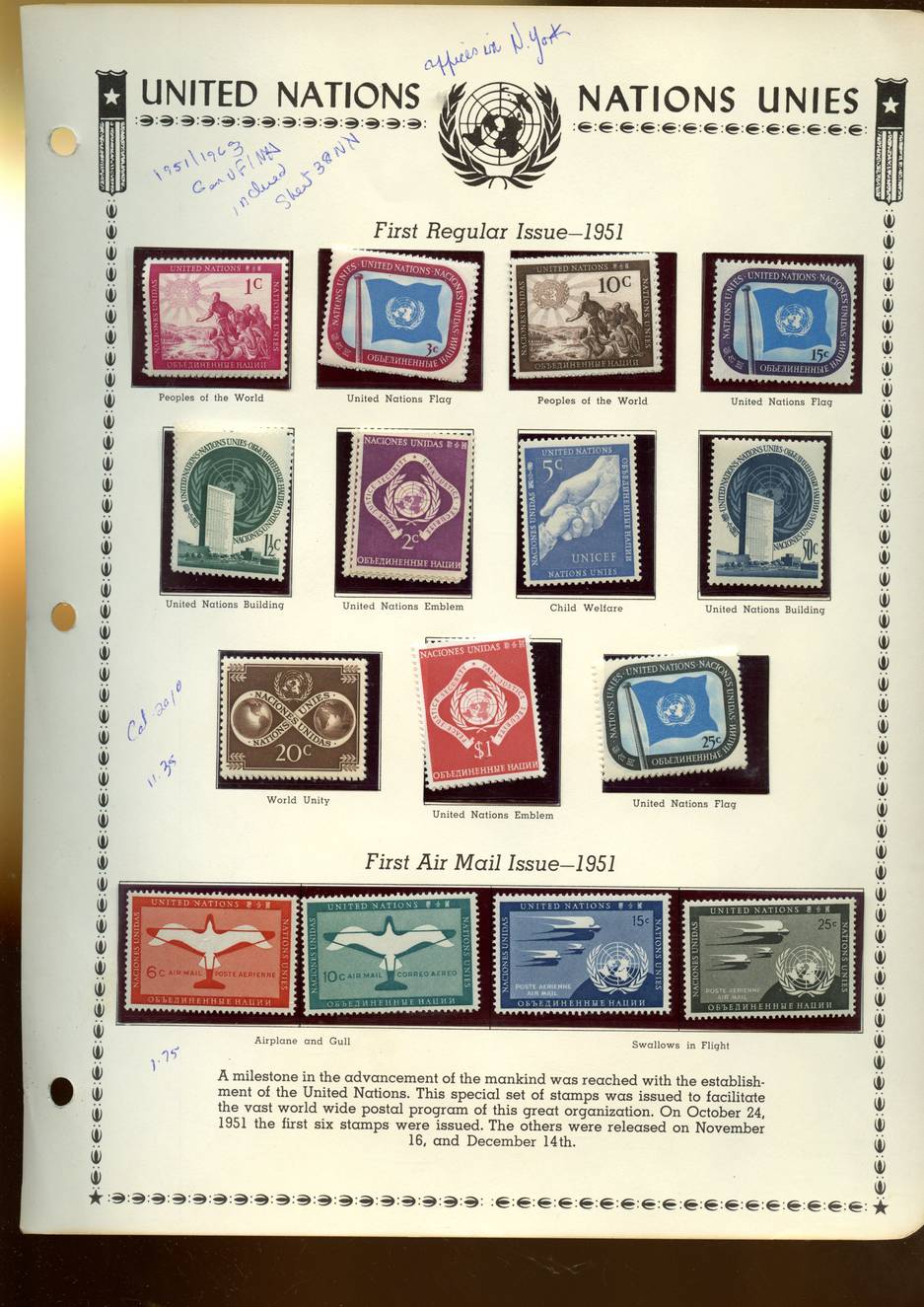 United Nations Offices in New York 19561/1963 gen VF NH incl