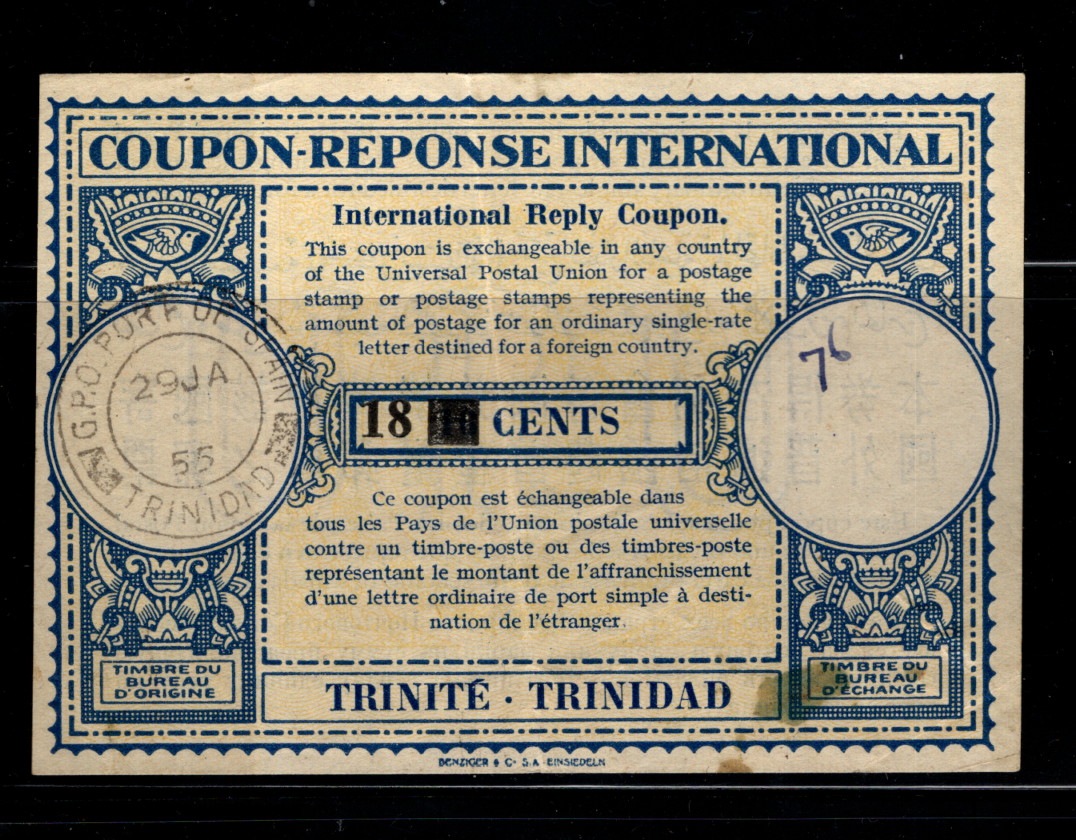 9902801 Trinidad Scarce Reply Coupons 1955 UPU