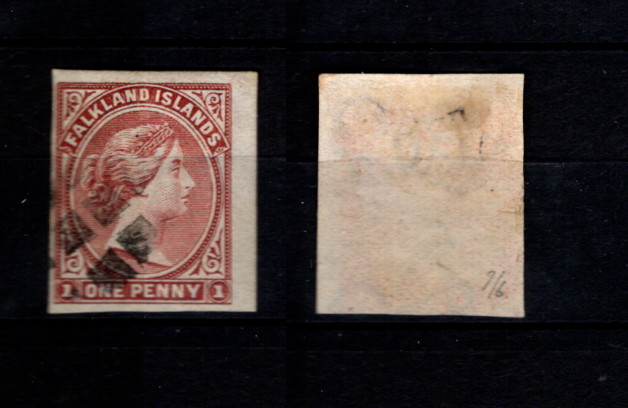 9904447 Falkland QV Scarce IMPERF Used 1 Penny LOOK* -> (Item #: 9904447)