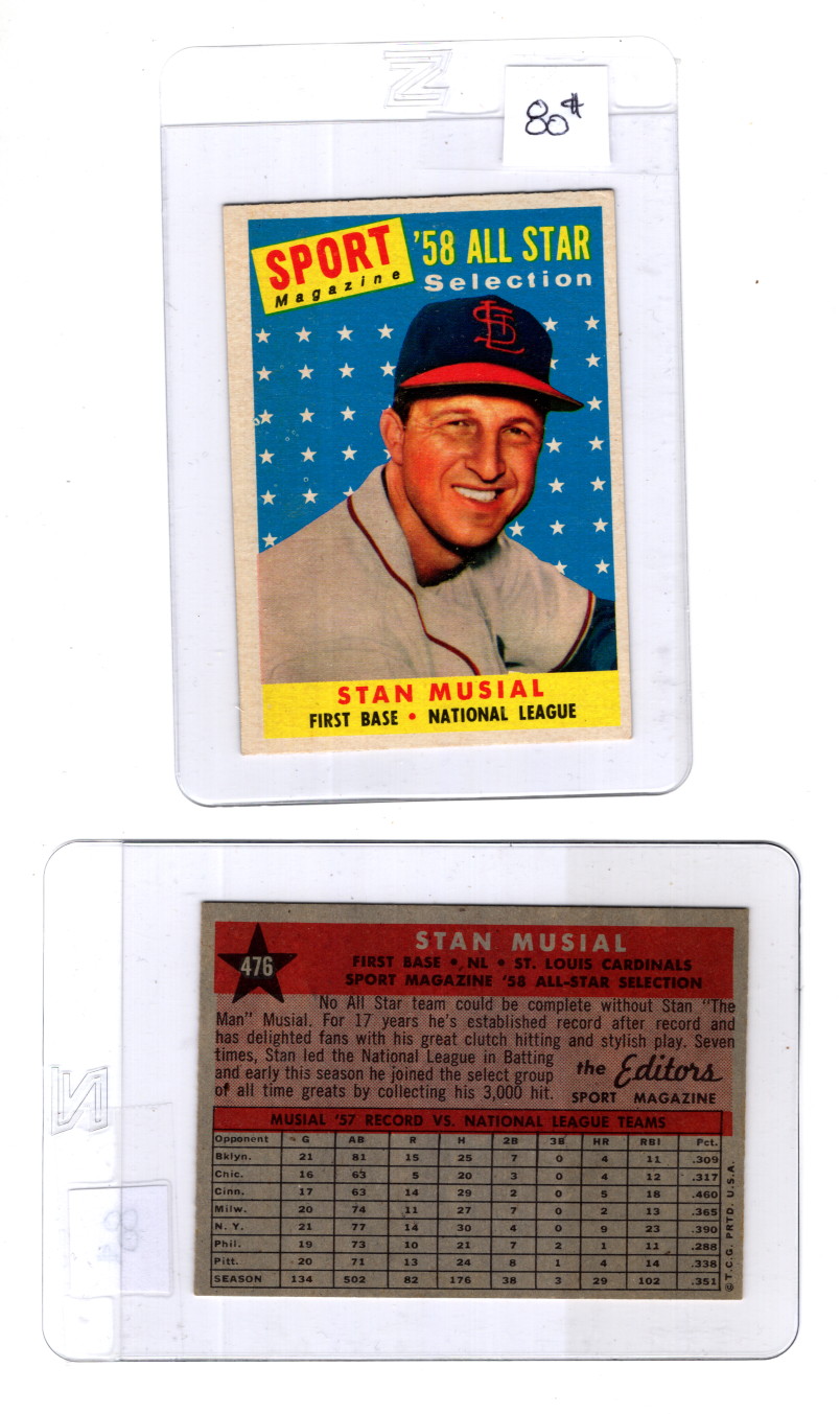 Baseball Topps 1958 #476 Stan Musial Quality HiCV