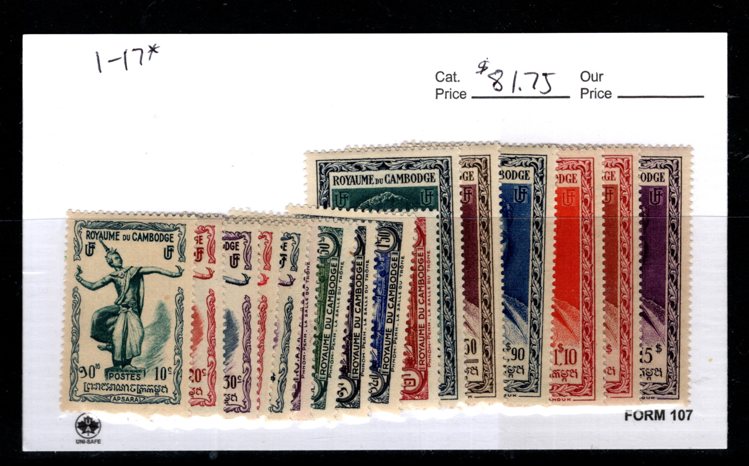 9907175 Cambodia Sc 1-17 VF H OG CV 81.75$
