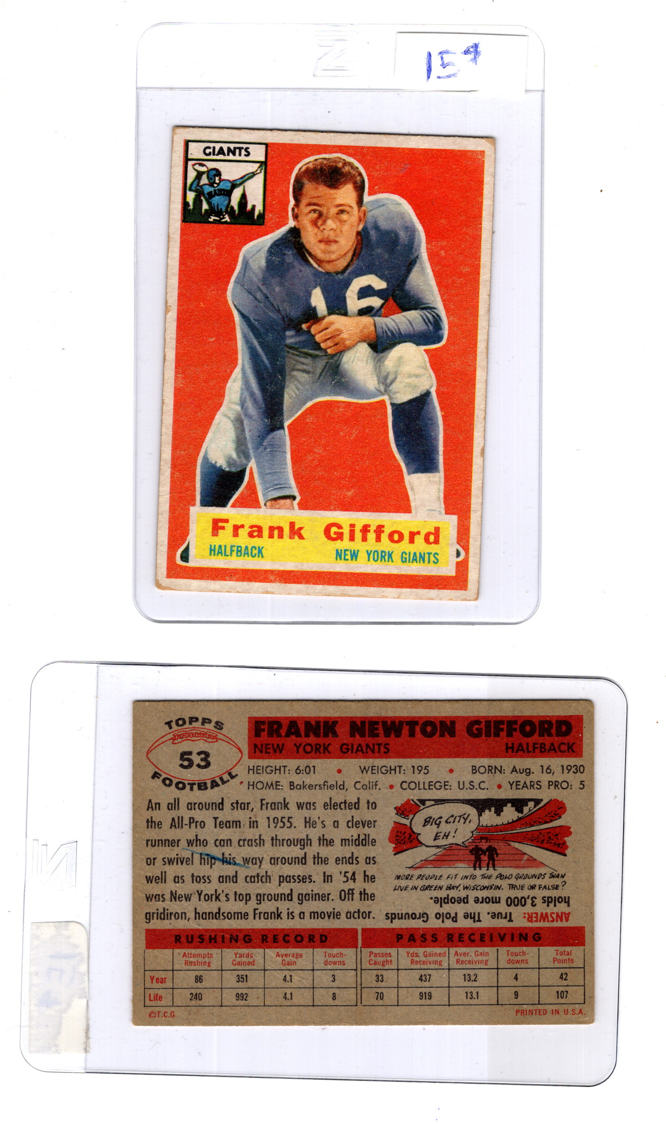 Football Topps 1956 #53 Frank Gifford