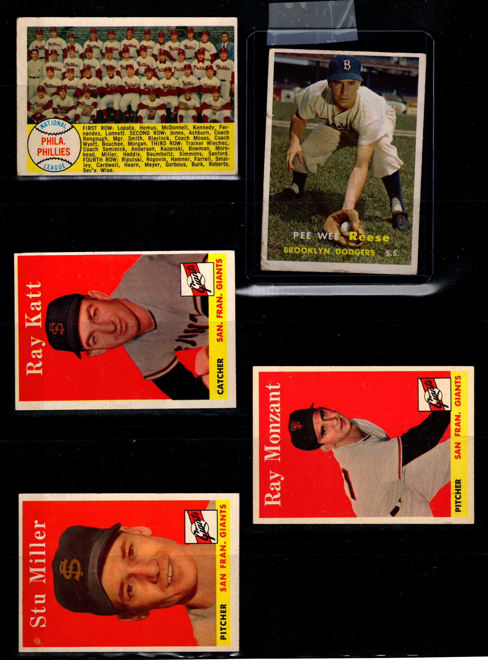 9907328 Baseball 5x Scarce OLD Cards Pee Wee Reese 1957