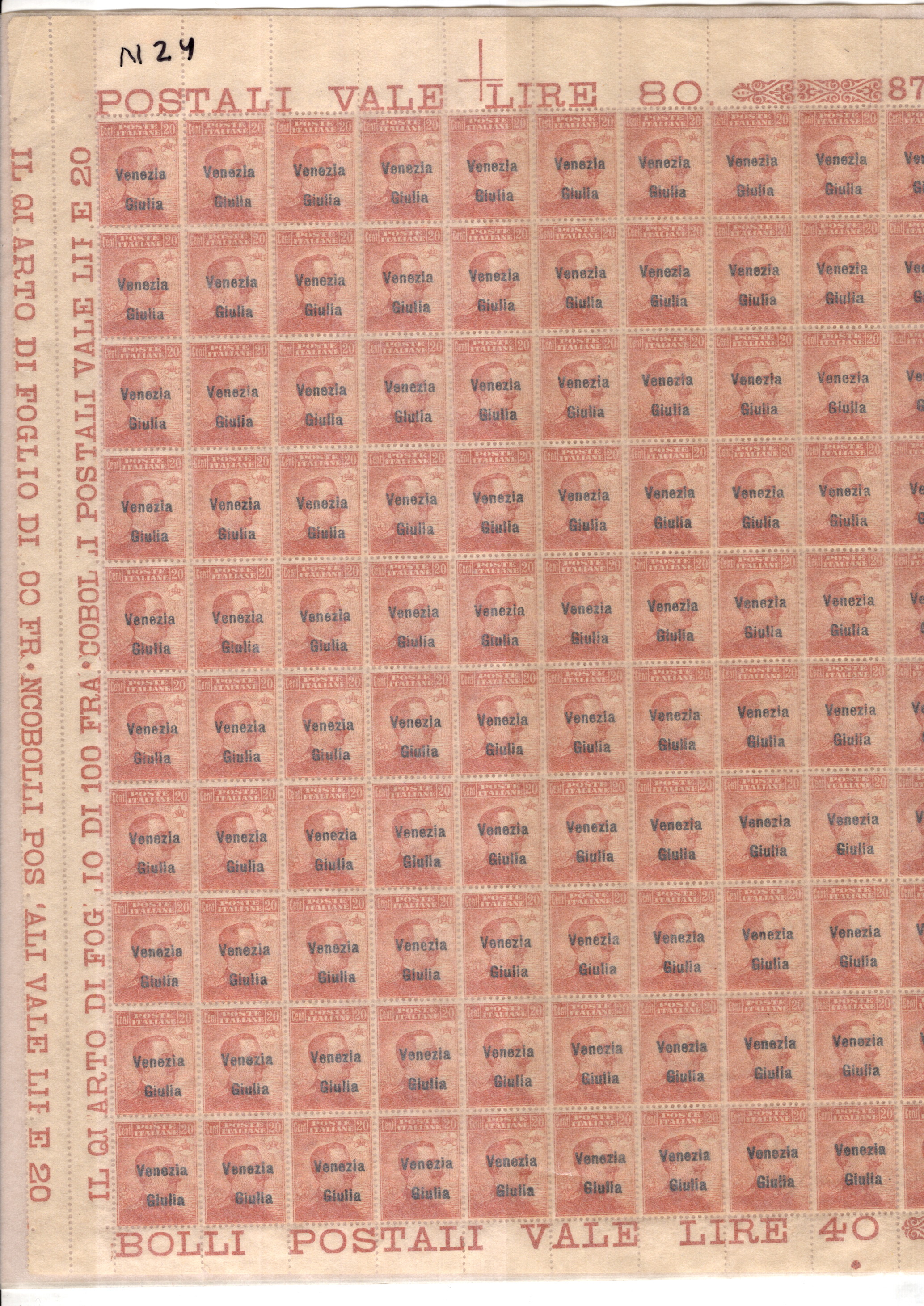 9907425 Austria Sc N24 VF NH Sheet of 100 CV 900$