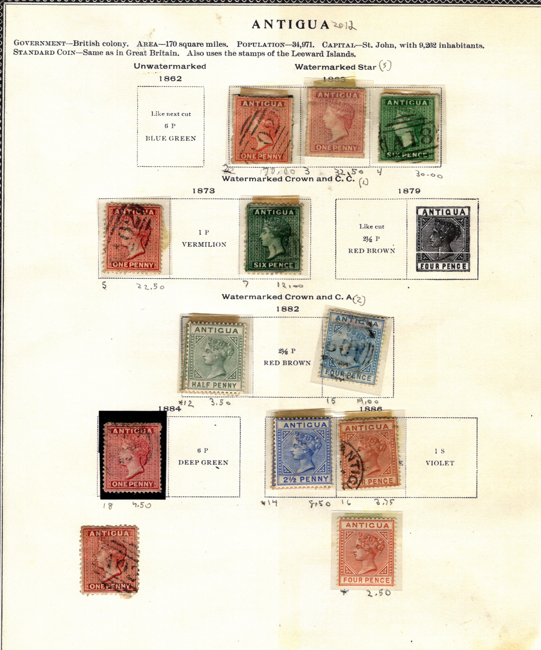 9907690 Antigua Scarce MINT/Used QV 1862/...* -> (Item #: 9907690)